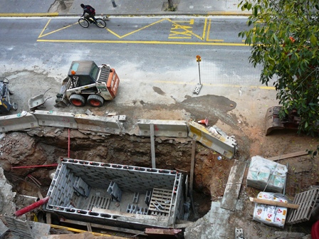 Aviat farà un mes que visc parapetat rere una tanca d’obra. N’estava avisat. Quinze dies abans els arbres havien florit cartells grocs prohibint l’estacionament. Jo crec que els arbres s’haurien conformat amb prohibir les pixades de gos; però això és un altre tema… I la profecia es va acomplir amb l’arribada d’una excavadora escortada per