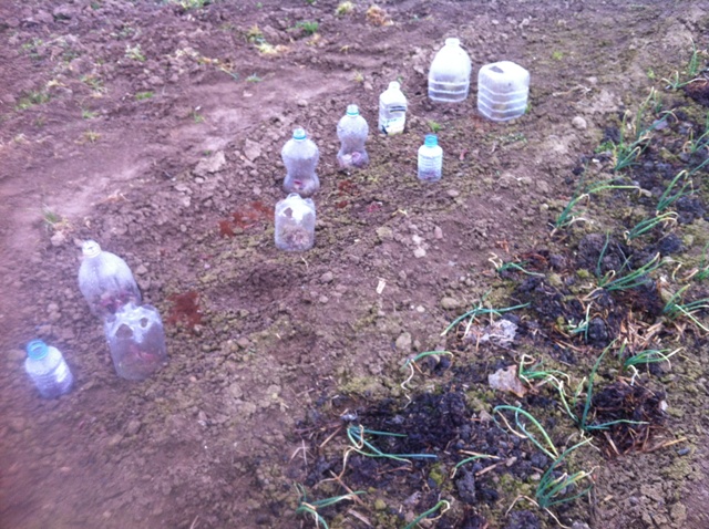 Fartes de la cantarella que aquest Nadal ens ha trepanat els timpans aquestes ampolles de plàstic han desobeït la consigna del contenidor groc i passant del marró de l’orgànic; han anat a petar directament a l’hort. Fora de lloc, cul en l’aire, reciclades en hivernacles de joguina per major glòria del Capità Enciam.