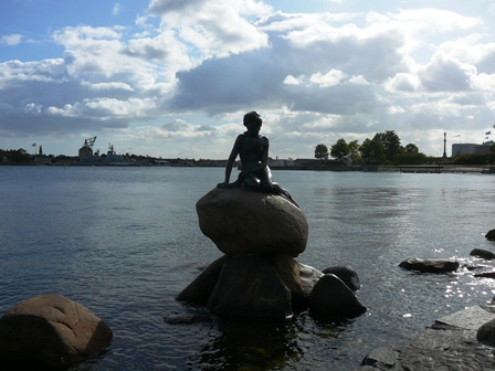 País petit, com el símbol de Copenhaguen; una petita sirena que es mira l’aigua amb posat tristoi. Ara que reviso les fotografies, m’adono que la seva cua canvia sensiblement en cada instantània… Ets tu qui batent la cua fa desfilar els núvols per tal que els nouvinguts ens enlluernem de la ciutat esbandint qualsevol primera impressió negativa? Gràcies noia!