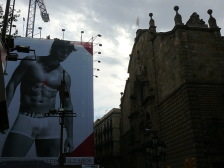 Ramblejant durant la passada Diada de Sant Jordi vaig ensopegar amb aquesta confrontació divina. L’Anticrist ―La Bèstia!― exhibint-se impúdicament just davant l’església de Betlem. Senyor, Déu meu! Amb Arcàngels tan reals com aquest no m’estranya que es buidin esglésies i s’omplin estadis. Les religions canvien però no les ganes dels assistents de menjar-se el cos de Crist.