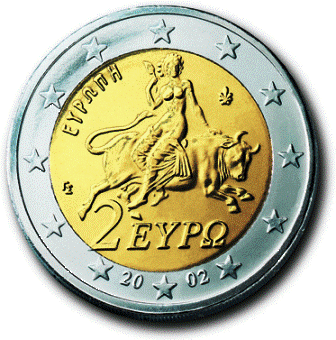 Conta la llegenda que Zeus, enamorat d’una princesa fenícia anomenada Europa, va convertir-se en un brau blanc per atraure-la. La noia, encuriosida, va asseure’s al llom de l’animal que va sortir volant enduent-se-la a Creta on la va posseir. Tal va ser l’amor que Zeus va decidir batejar amb el seu nom una part del món. El Rapte d’Europa és precisament la imatge de l’anvers de les monedes de 2 euros gregues. Mil·lennis després Europa es torna a veure raptada però disposada a fer passar per l’adreçador el bressol de la cultura occidental si no vol que la seva economia visqui una llarga sessió d’art amatòria típicament grega.