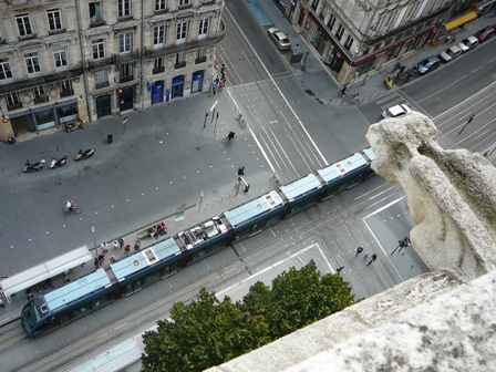 Bordeus se la va jugar amb el sistema APS (Alimentació Pel Sòl). Mal resumit; consisteix en un tercer carril instal·lat entre els dos rails on hi llisquen uns patins situats sota els combois d’on capten l’electricitat: Aquí hi trobareu una explicació més acurada. La capital d’Aquitània té tramvia per petició popular; especialment dels comerciants que van forçar l’ajuntament a avortar el projecte d’una xarxa de metro similar a la de Tolosa de Llenguadoc.